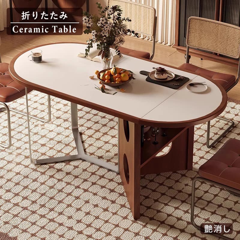 まずは、セラミック系の天板を採用した長方形ダイニングテーブルについてご紹介します。熱や傷、汚れに強く、さらに日々のお手入れはサッと拭くだけで清潔を保てます。つまり、長く安心して使える点が大きな魅力です。