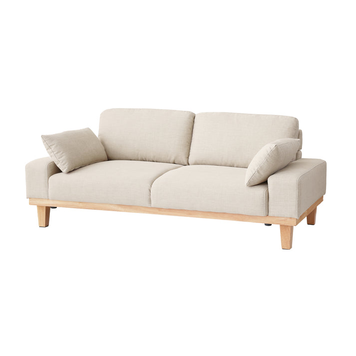 2人掛けソファ「Shelo(シェロ)」は、天然木フレームとやわらかなファブリックの組み合わせで、リビングに温かみを添える一台です。
